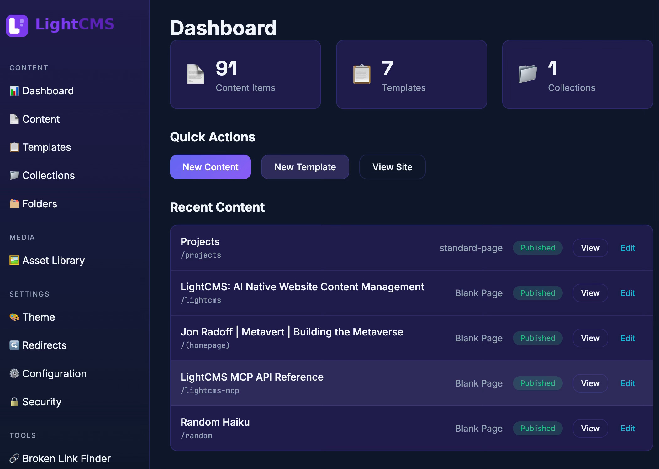 LightCMS is MIT licensed and ready to use. Fork it, extend it, build on it. Or just use it to run your website through conversation. Either way, welcome to the age of agents.