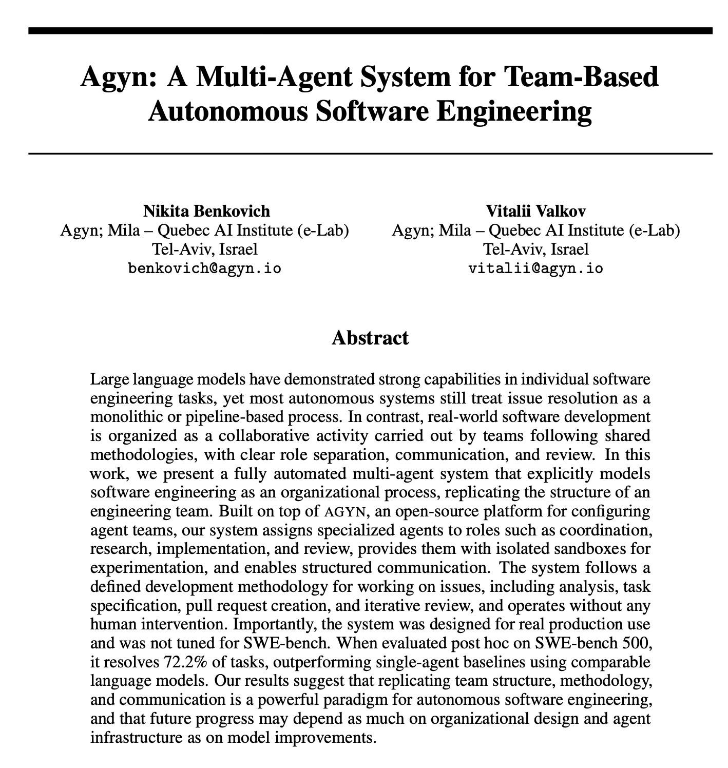 Agyn: A Multi-Agent System for Team-Based Autonomous Code Generation: Role-based agent teams for autonomous software engineering.