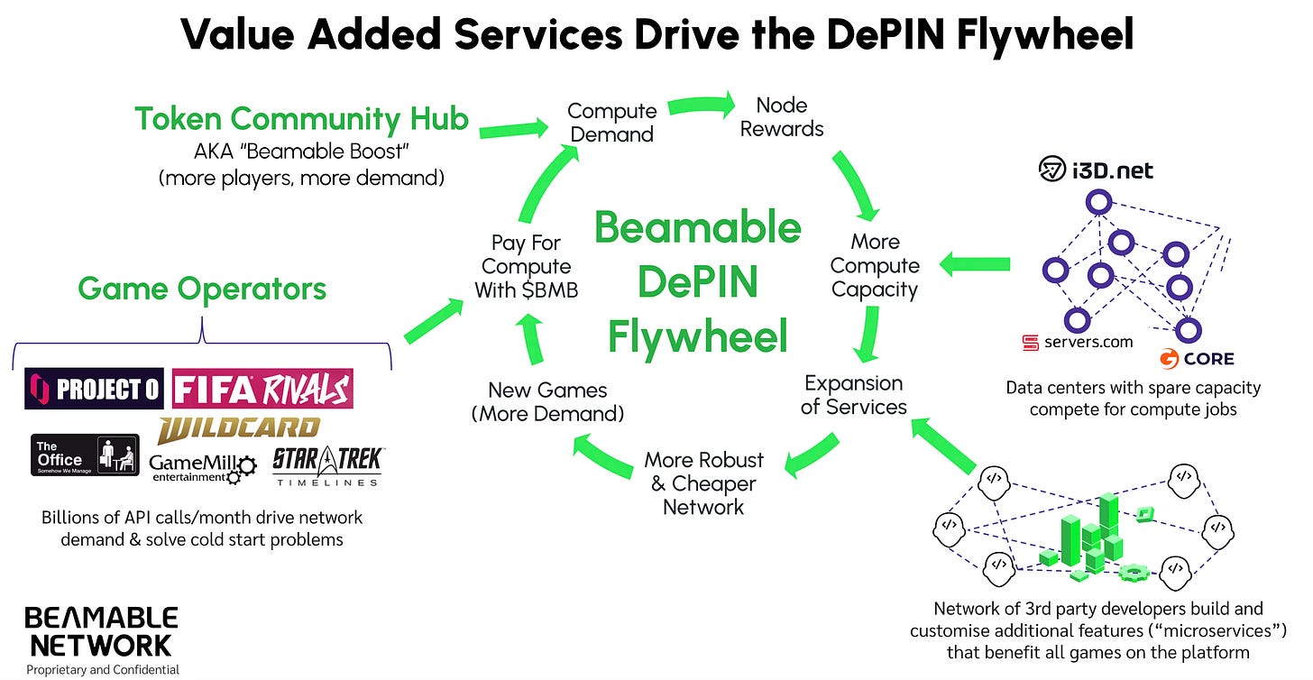 A vertical DePIN like Beamable Network fuses infrastructure, value‑added live‑ops services, and an incentivized player community into one self‑reinforcing flywheel. Developers lower costs and ship faster, gamers earn by championing the titles they love, and the $BMB token aligns everyone along the way. The result is a sustainable path to scale—technically and commercially—that traditional clouds simply can’t match.
